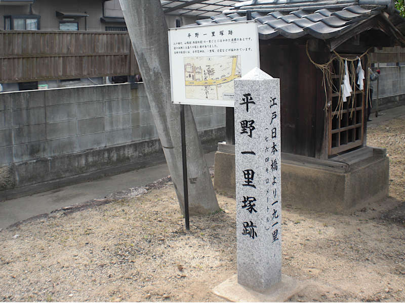 西国街道 平野の一里塚跡」の石碑が建っている。