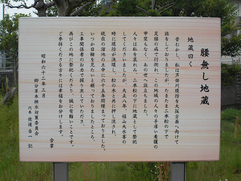 山陽自動車道の高架下を通りしばらく行くと、お地蔵さまが祀られている。何か曰くありげだったので案内板を読んでみた。