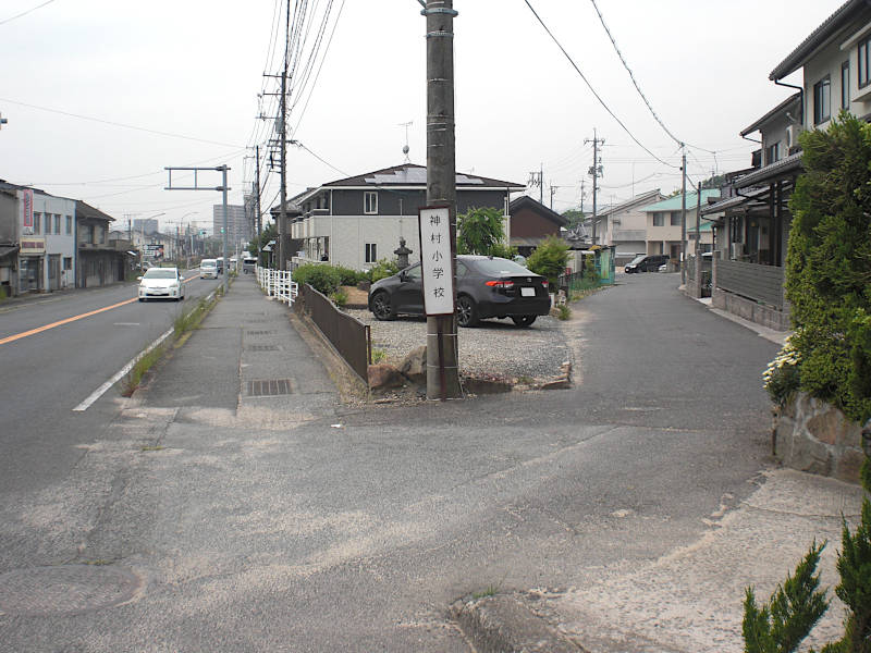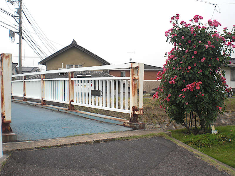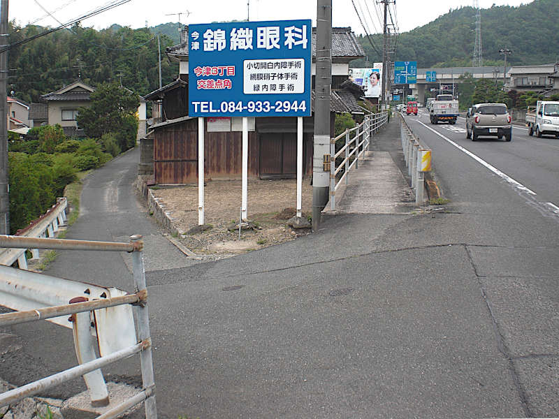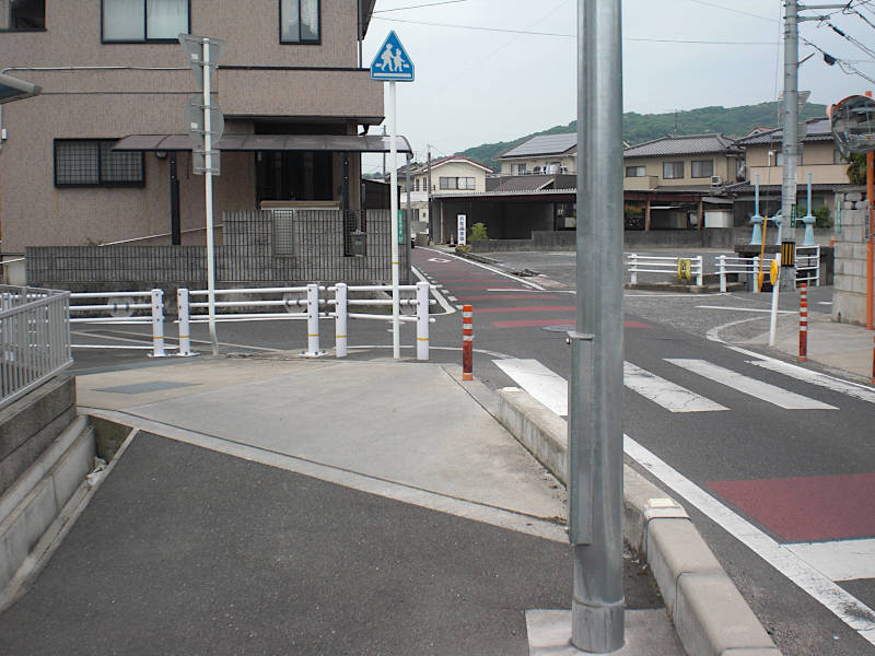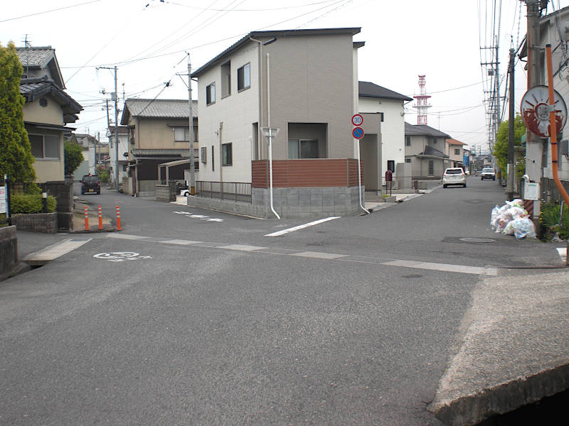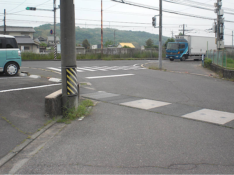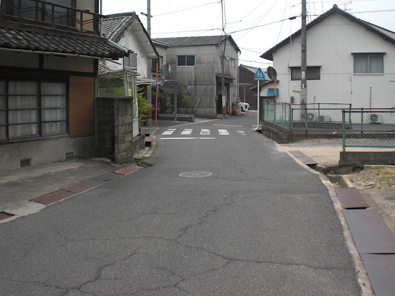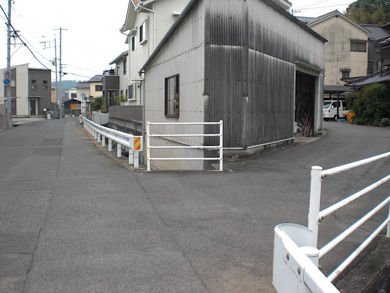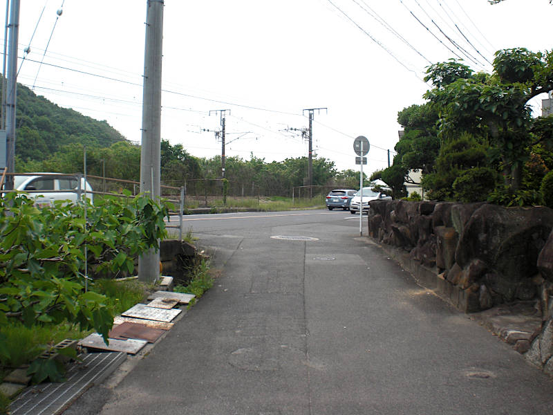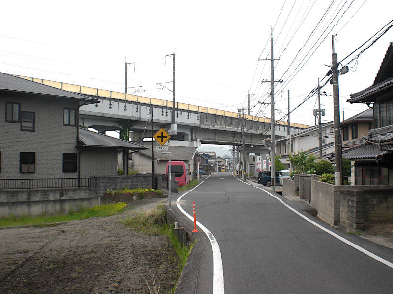 真っ直ぐな道を進んでくると山陽本線に当たって右へカーブする。再び左へカーブする辺りにこの「