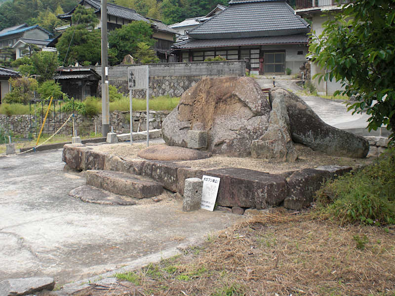 すぐ先に大きな石の乗った台座が有る。「