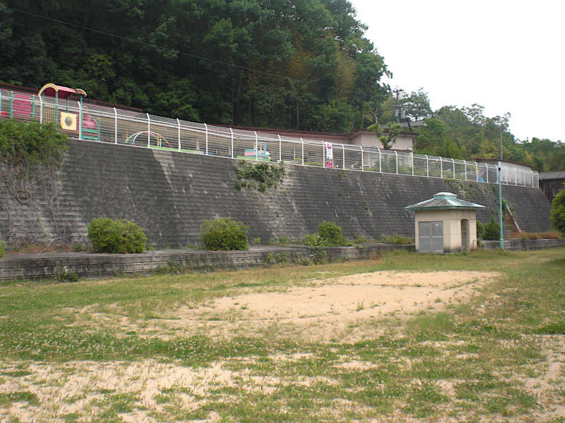 坂を下り切るちょっと手前に広場が有る。小さな運動場のような所だが、トイレらしきものが見えたので行ってみた。