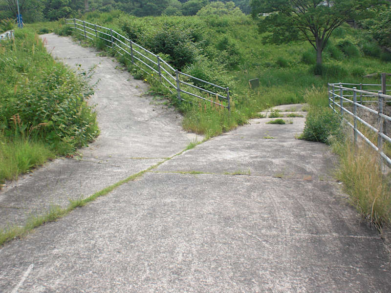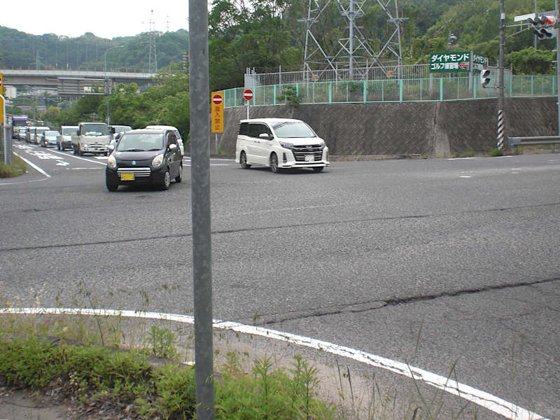 出たところで見ているのは西の方からバイパスを下りてくるランプウェイ。ここから直接横断は出来ない。もう一度今度はバイパスに合流していくランプウェイを横断。