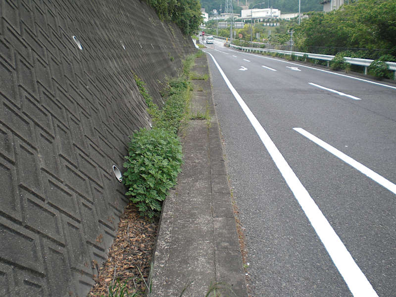 目的の西北側ランプウェイに入ったら、歩道は無いが左側道(バイパス直下)へ移動となる。ここには細いが歩道が有る。