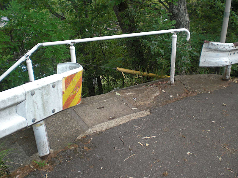先ずガードレールの切れ目から急坂を下りる。
