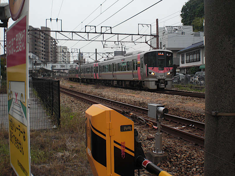 山陽本線沿いの道路は横断して、その向こう側を西進する西国街道に入る。通称「本通り商店街」。