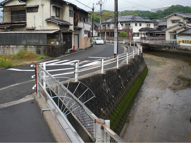 さらにしばらく下ると山陽本線の踏切が有る。これを渡ってさらにバイパスではない国道2号線の横断歩道を渡る。
