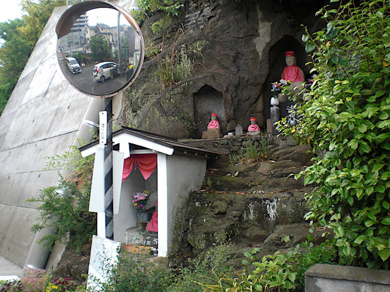 山陽線に着かず離れず進んでいくと、緩やかなS字カーブの右、山肌に沢山のお地蔵さんが祀られている(09:24)。