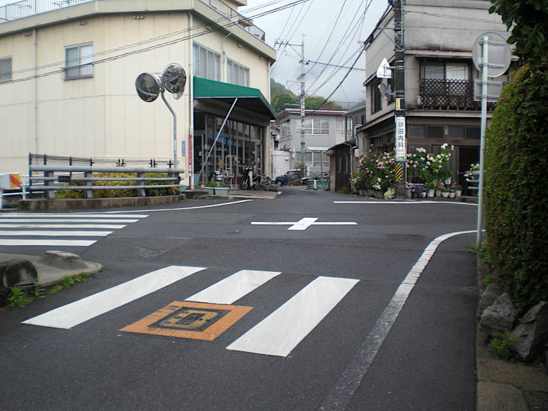 踏切を渡り、少し行ったところに有る横断歩道を渡る。