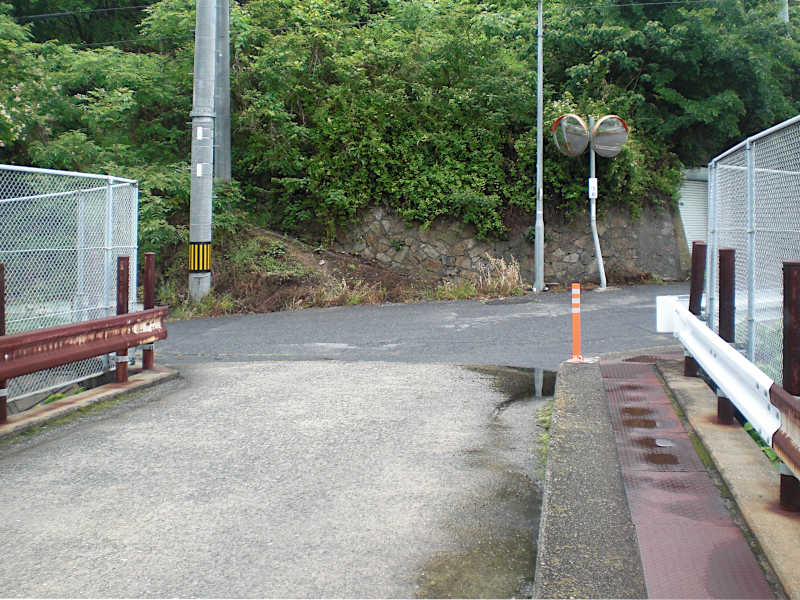 車道が掘り割りになっている上を通過し、「尾道市立 吉和小学校」のグランド横を過ぎると、川沿いの道との交差点に来る。