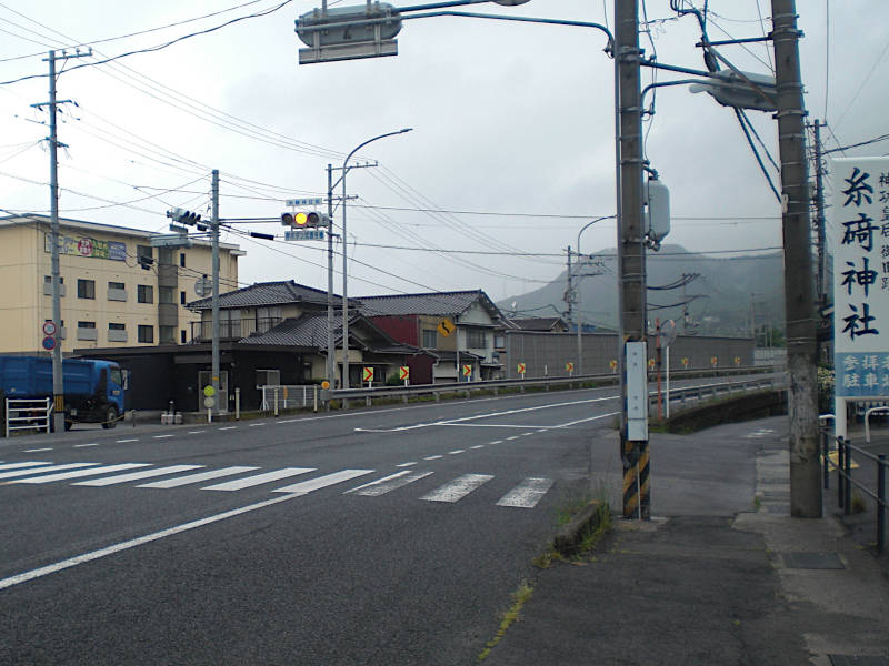 [糸崎神社前]信号を渡らず、そのまま高架となる国道横の側道を直進して、高架下をくぐった方が実際の西国街道に近いのではと思った。