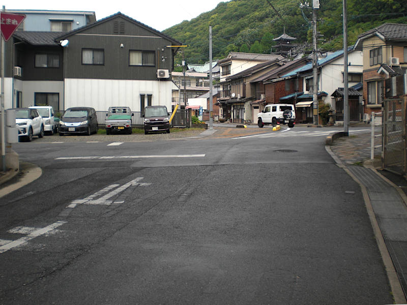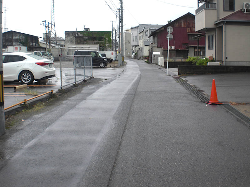 すぐ近くに横断歩道が有る。山陽本線の横に渡って、線路沿いに次の細い脇見に入る。