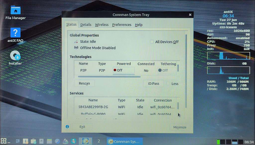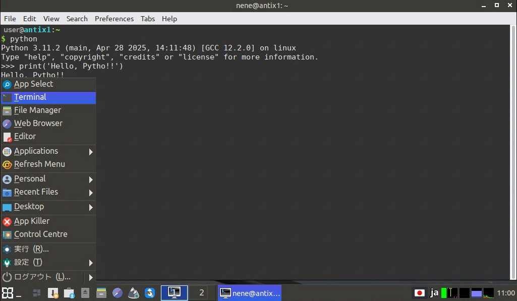 孫に Python を学習させようと企んで古いネットブックを専用マシンに仕立ててみた。AI がこれが良いよと言うので入れてみた、antiX Linux。何と自分用にも使えそうな軽さ!!