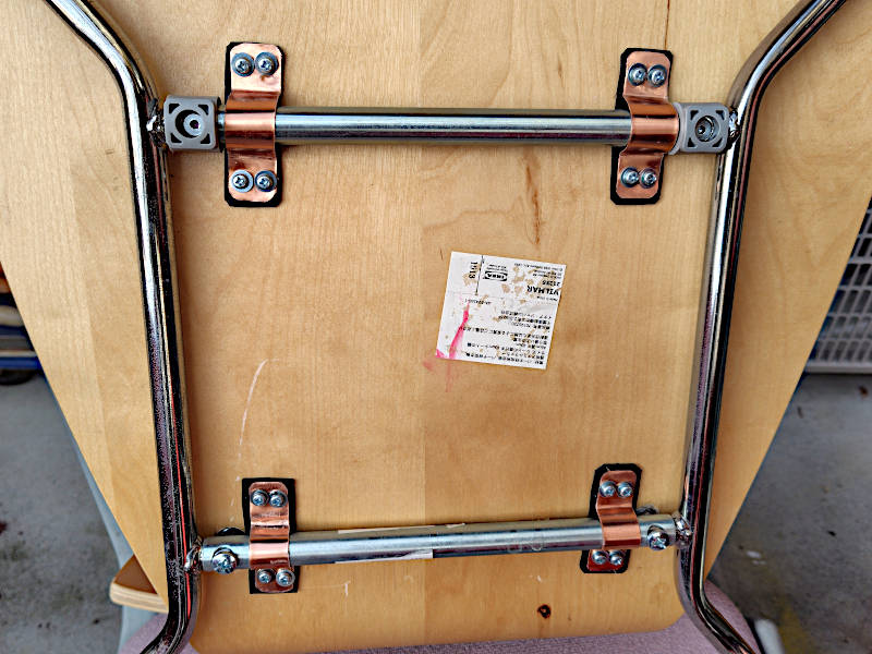 元のボルトは、左右の脚パイプを連結する2本のパイプとの固定だけを担って貰うことにした。