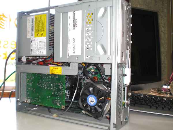 - 修理はまずきれいに掃除することから始まる。埃をすべて取り除き、CPU、ヒートシンク、ファンを分解し風通しを良くしてやる。もう一つ重要な箇所は電源の中。ここも 清掃用のガスボンベを使って吹き飛ばす。