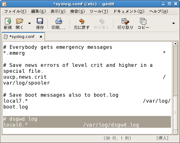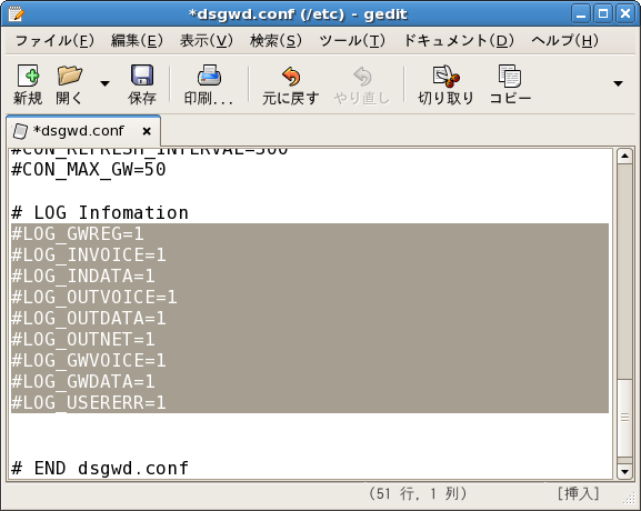 - [inittab]を保存して、エディタを閉じるとコマンド入力待ちに戻ります。