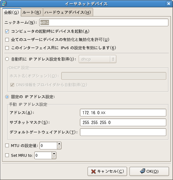 以上で、ゲートウェイ・サーバーのインストールは完了です。もちろんリピータ側、 ルータ側の設定値によって記述したネットワークデバイスの設定値も変わりますし、