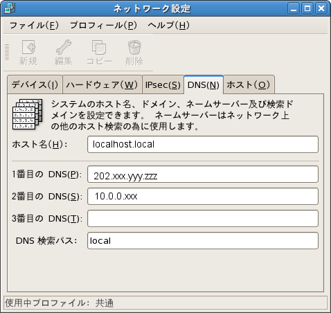 [一番目の DNS]にdsgwd.confを編集したときの[JARL管理サーバ]のIPアドレスを入力し、