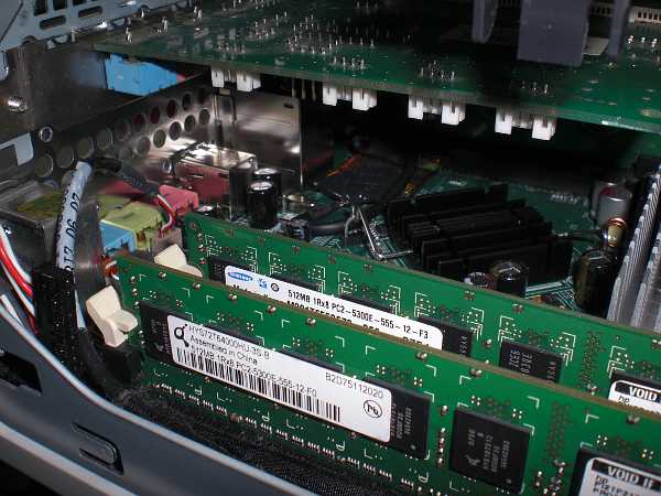 標準装備品はPC2-4200(DDR2 533M)規格のものだが、残念ながら同等品がない。そこで調べてみるとPC2-5300(DDR2 667M)にも対応していたので、 手持ちの中古品512MB2枚と交換したところ、動作チェックも問題なくパスした。