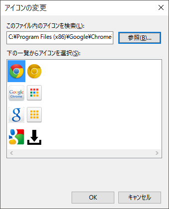 [OK]をクリックすると,アイコンのある場所を指定できるダイアログが開きますので[参照]をクリックして
