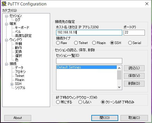 - PuTTY から SSH を実行
