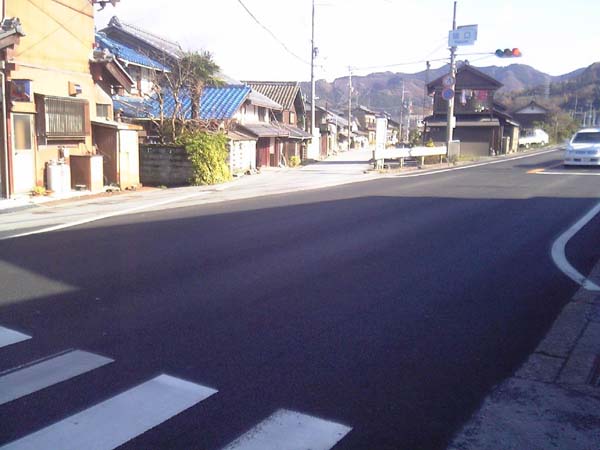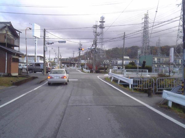 左写真のように、信号を渡って21号線と並ぶように東へ向かう。