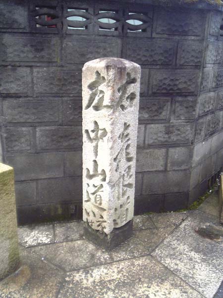 さらに足を進めると、鳥居本宿の入り口に右・右写真のような道標が左側にある。