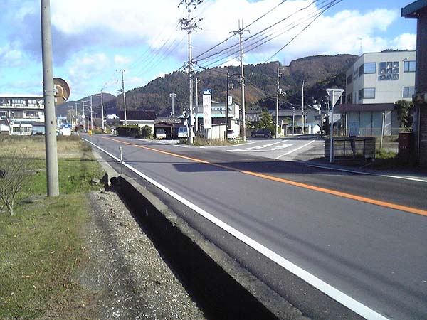 また、国道に出るので適当な場所で国道の右へ渡って進む。歩道もなく狭い国道なので注意が必要。