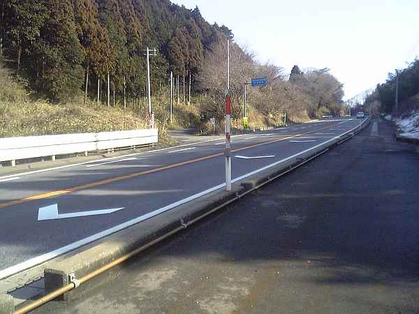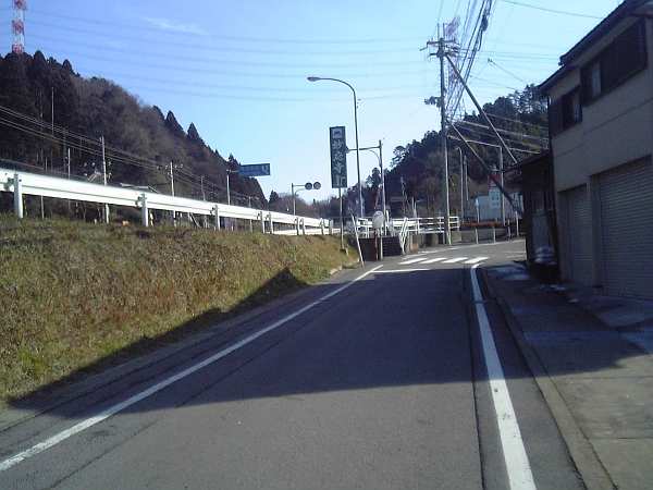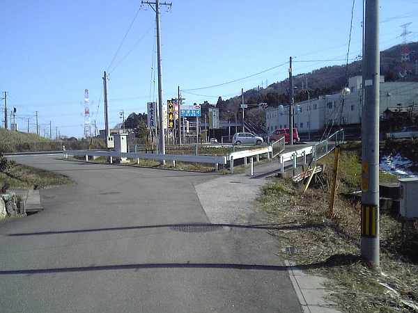 ここは、右側にガードレールで挟まれた細い道を通って国道の歩道へ出る。