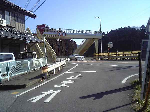 しばらく行くと外れで、また国道21号線に出るが、歩道橋が有るので渡る。(右・左写真)