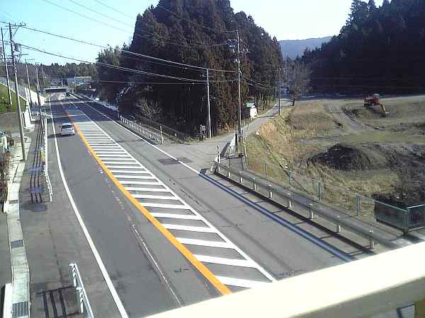 少し国道より高台を進んでいくと、下り坂の先にまた国道が見えてくる。(下・左写真)