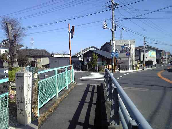 まっすぐに進んでいくと、垂井の町に入った辺りで車道が右にそれ、細い道が直進する場所がある。(右・左写真)