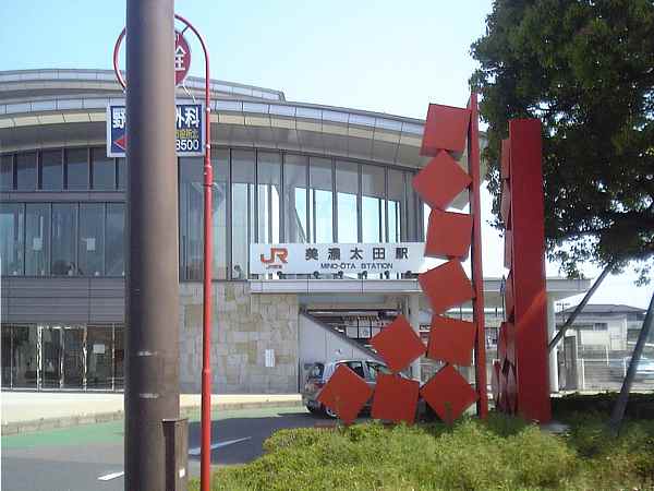 この交差点の右向こうが御嵩駅である(下・左写真)。