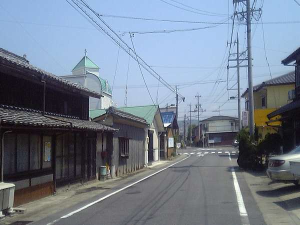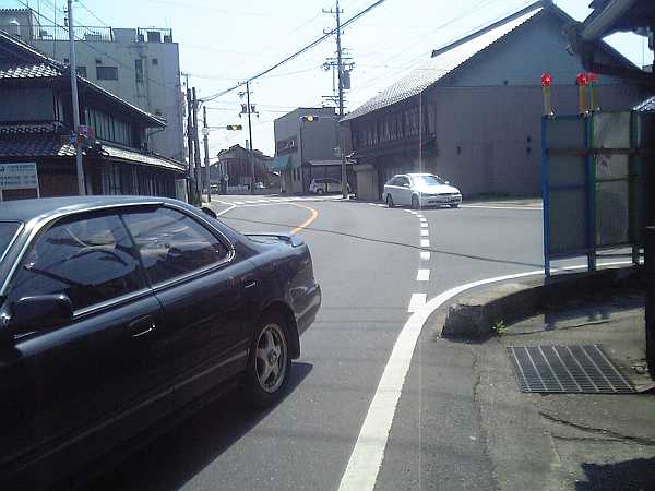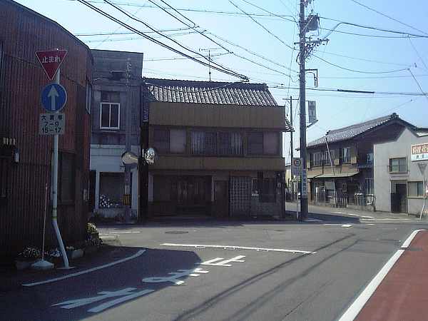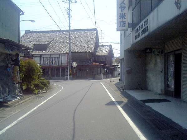 大きな瓦屋根の趣ある建物がある十字路を左折(右・左写真)。大きな枡形である。