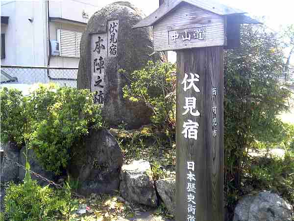 この信号を過ぎると大きく左へカーブしながらなだらかな坂を上って伏見宿へ入る。