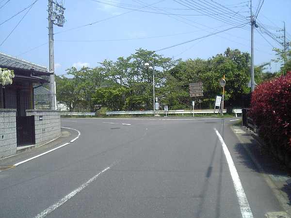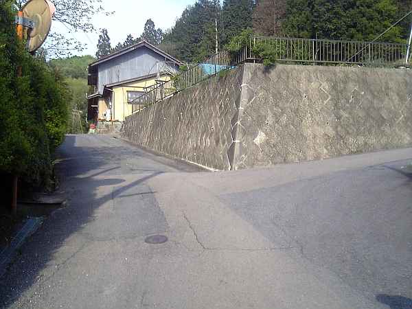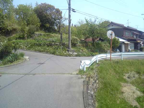 坂を下っていくと車道が十字路になっている付け根あたりに下りてくる(右・左写真)。