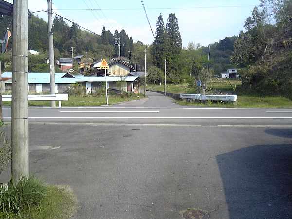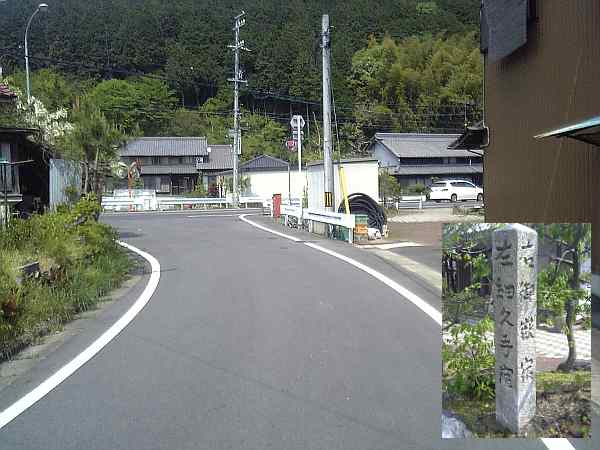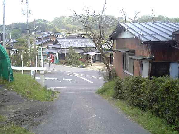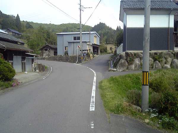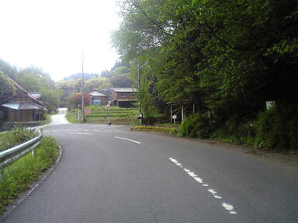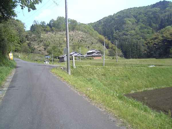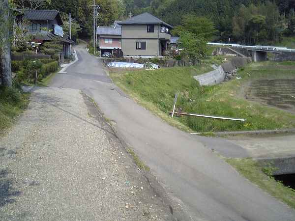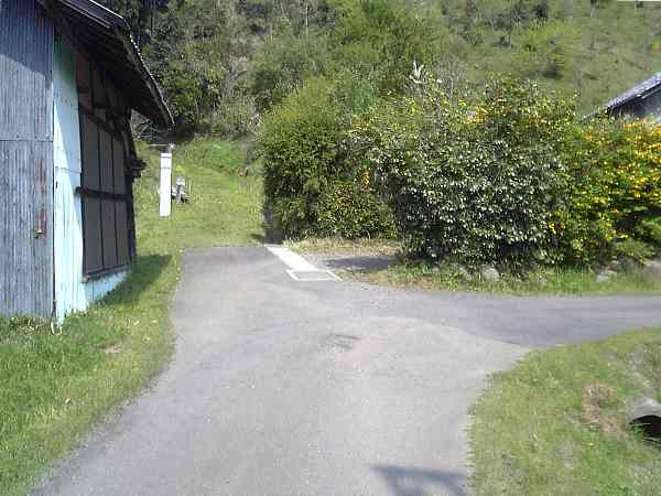 ちょうど写真の真ん中にある民家の横をすり抜けるように山の中へと入っていく(右・右写真)。