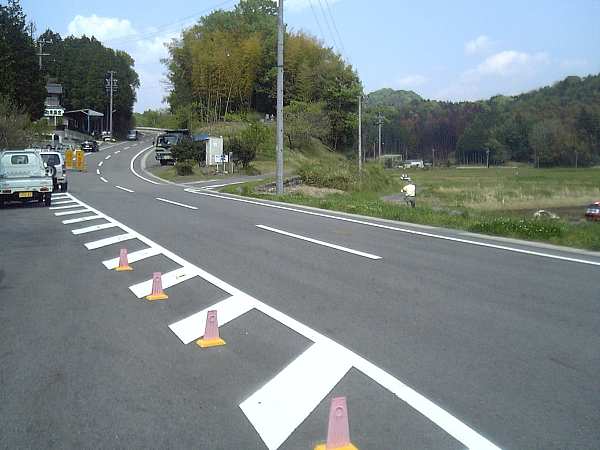 しばらく行くと前方に車の行き交いが見えてくる。21号線である。
