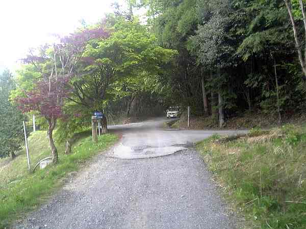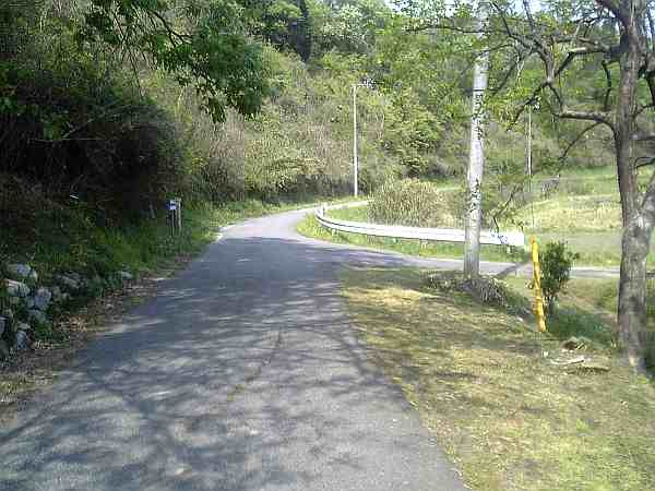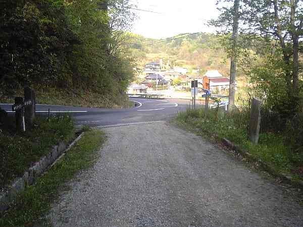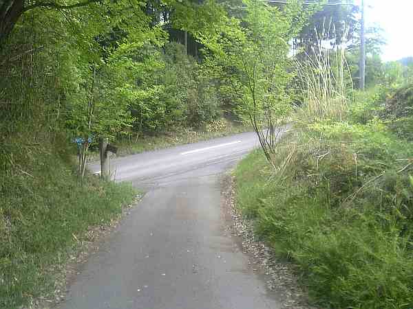 峠を越え走り出しそうな軽さで下っていくと車道に行き当たる(右・左写真)。
