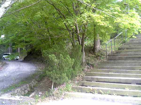 車を避けながら登っていくと、車道が大きく左へカーブする辺りに右へはいる所がある(右・左写真)。