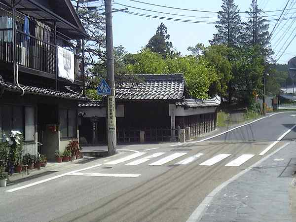 宿場街をしばらく行くと、角に立派な門構えの塀に囲まれた屋敷が見えてくる(下・左写真)。