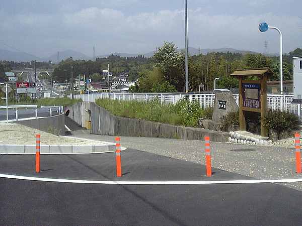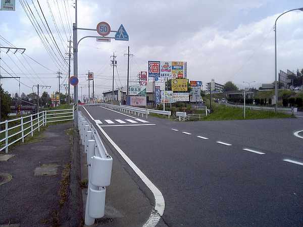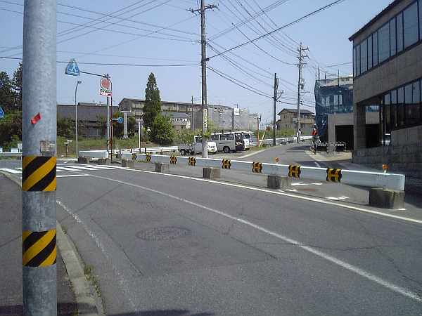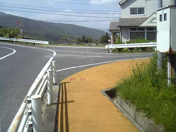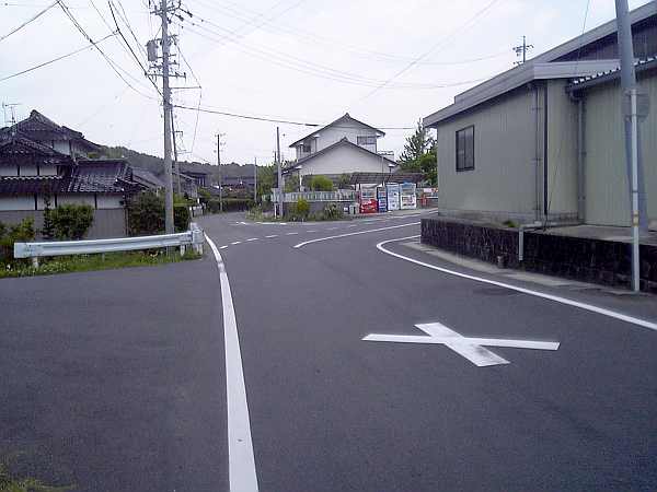 まっすぐ向こうへも道があるが、アスファルトの色でも分かるように、