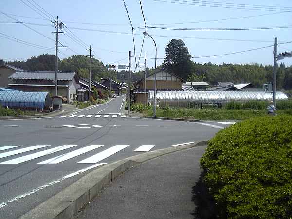 集落の中を下っていくと、信号のある交差点に来る(右・右写真)。