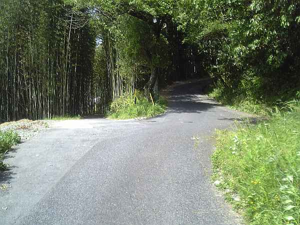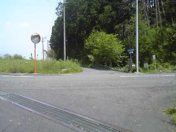 左にカーブしながら坂を上ると、比較的大きな三叉路に来る(左・右写真)。