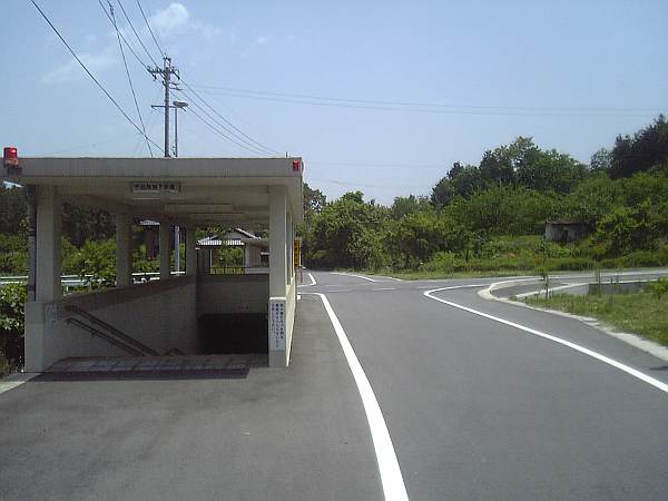 忽然と現れた山の中の地下横断歩道(右・右写真)。足が疲れていたのと全く車が来る様子が無かったのでパス。