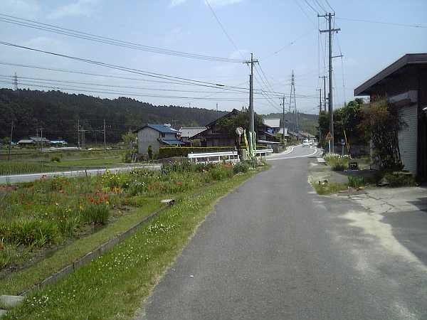 この集落の中を進んでいくとメインと思われる道路は左折れし、少し細い道がまっすぐに続いている(左・右写真)。