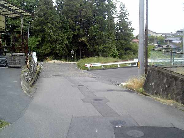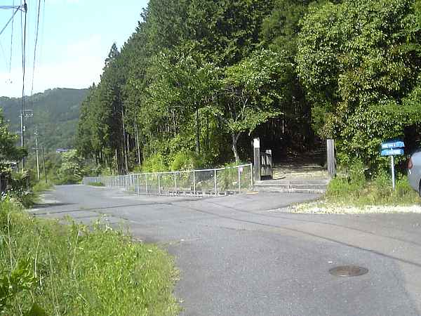 この三叉路(左・左写真)を右にカーブして直ぐのところに、ガードレールの切れ目があり、階段が付けられている(左・右写真)。