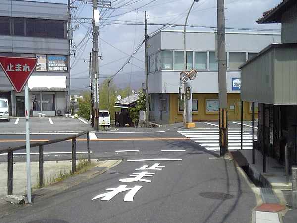 十字路があるがまっすぐ進んでくると歴史観のある建物のところで丁字路となっている(左・左写真)。