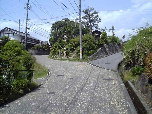 この石畳を上りきると車道と合流し、