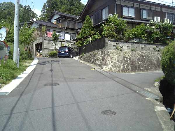 段々坂が厳しくなってくる(右・右写真)。このY字路は左へ行くのだが、