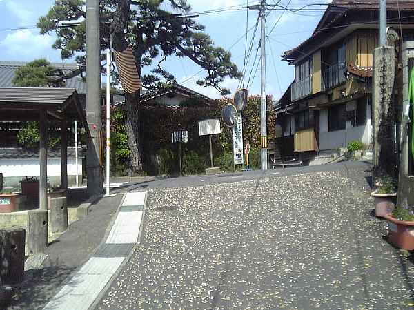 この辺りは、道路側溝のコンクリート蓋までが風情ある石畳模様(右・左写真)。